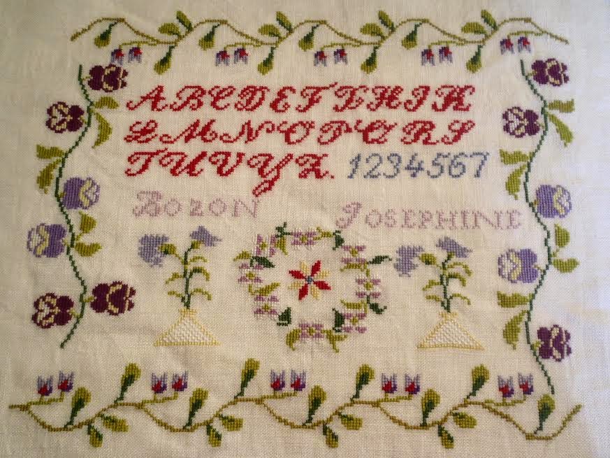 Je vous présente aussi la version de mon amie Françoise qui l'avait terminé bien avant moi et qui a mieux respecté les erreurs de l'original. Elle l'a brodé en deux fils ce qui rends les couleurs plus soutenues je trouve !